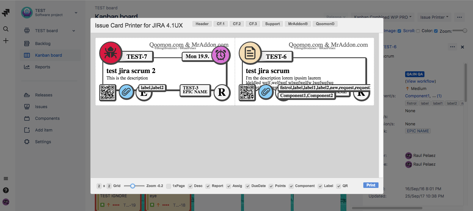 Now it’s time to announce, that “Issue Card Printer for Jira Cloud” now supports the new JIRA UX too!!