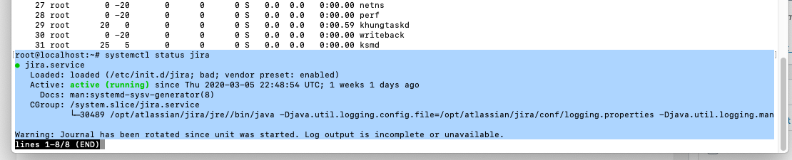 Loaded: loaded (/etc/init.d/jira; bad; vendor preset: enabled)