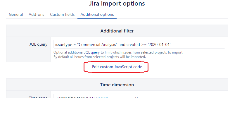 Select “Edit custom JavaScript code” and add the following code for each issue that you create.