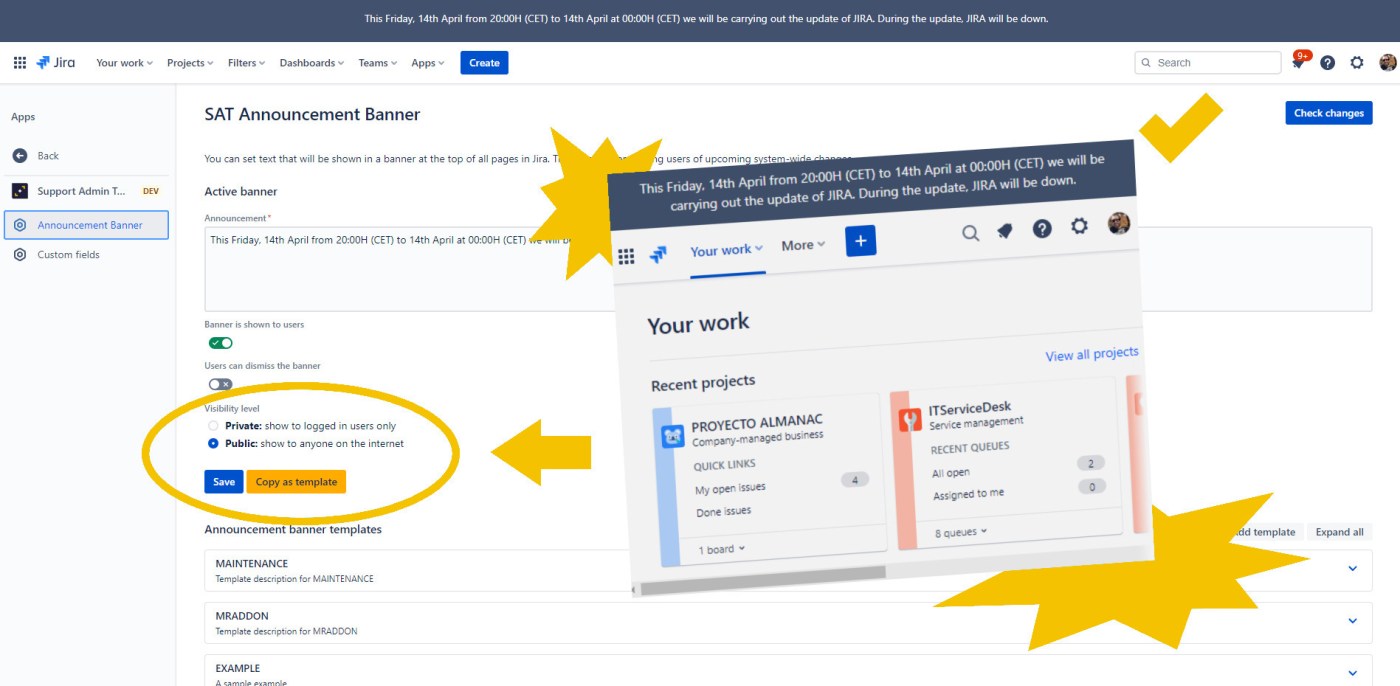 Managing a complex project requires robust support tools. The “Support Admin Tools & Announcement Banner for Jira Cloud” app offers a suite of enhanced support tools that empower Admins to handle Jira seamlessly. From efficiently managing projects to facilitating effective project management, these tools make the Admin’s role more effective and impactful.
