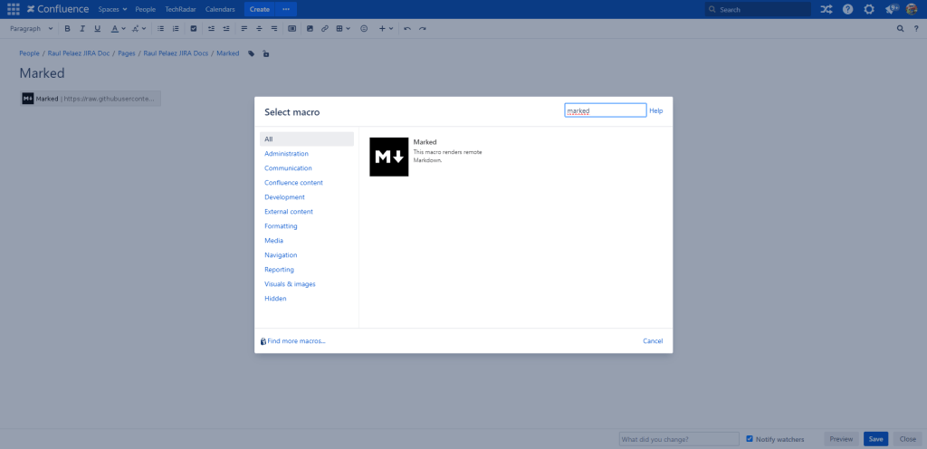 With this Confluence Datacenter add-on, your users will see a new Macro to render remote Markdown files in Confluence pages!