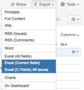 The new button, called “Excel (C.Fields) All issues”, is near the usual “Export” buttons in the Issue Search view of your JIRA. Very easy and useful for all your users!