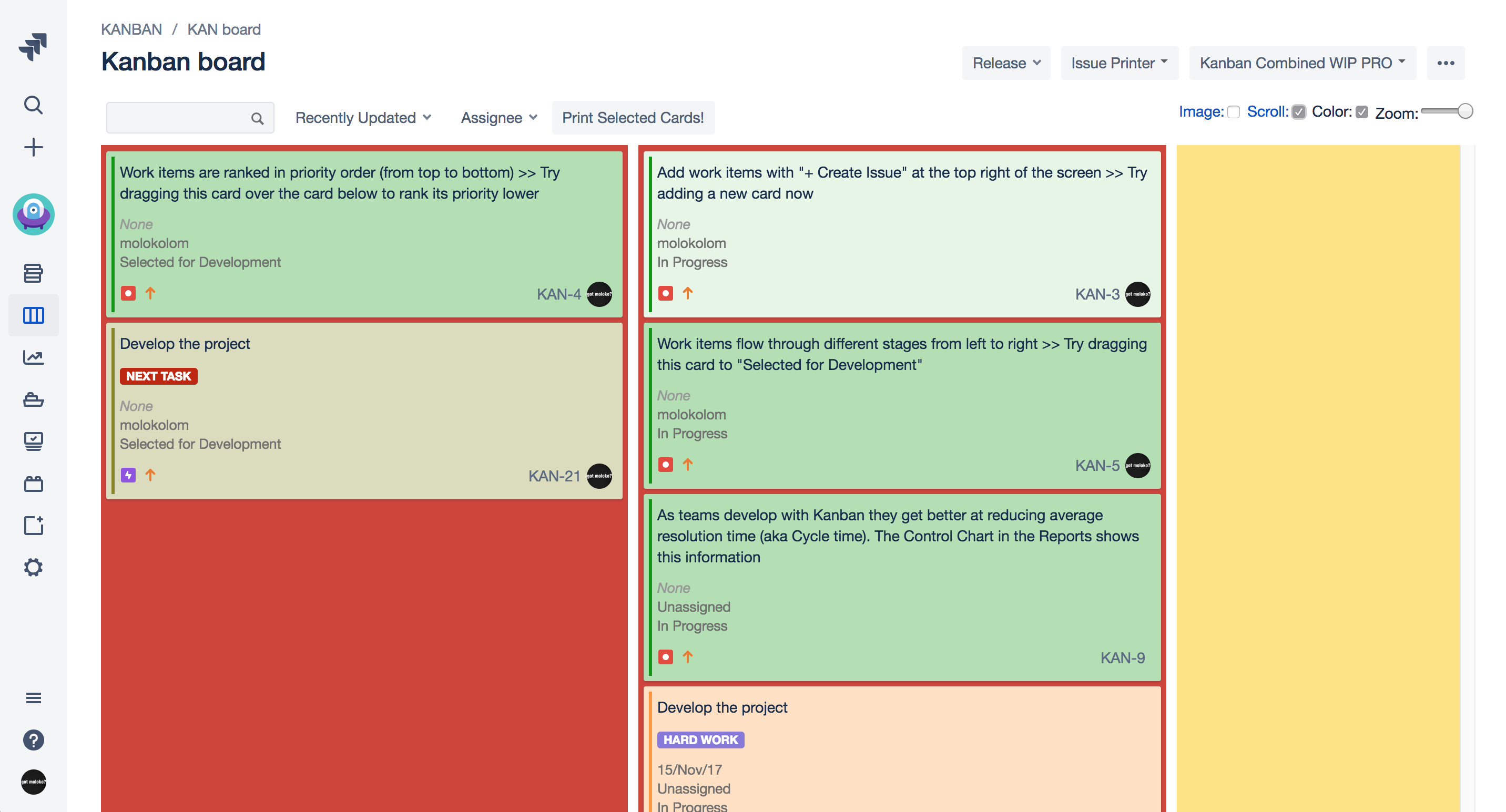 With this JIRA add-on you can take more advantages in your Agile processes. This add-on was created to accomplish with the real KANBAN rules and methodology. This plugins helps also in SCRUM and SCRUMBAN methodologies. Once installed it allows nice new functionalities in your usual JIRA Agile RapidBoards. No configuration is needed only install in your JIRA Cloud to allow the Google Chrome Browser Application install button.