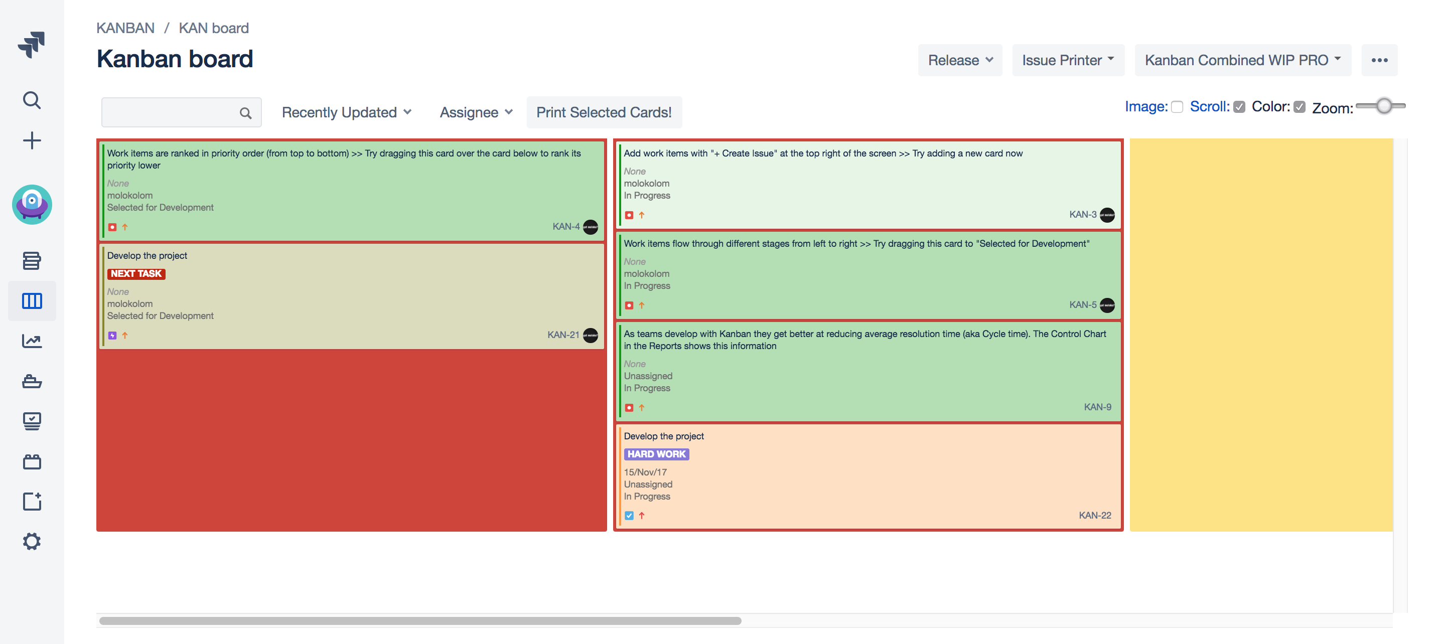 Colorise in FULL COLOR all the cards of the JIRA Agile Boards.
