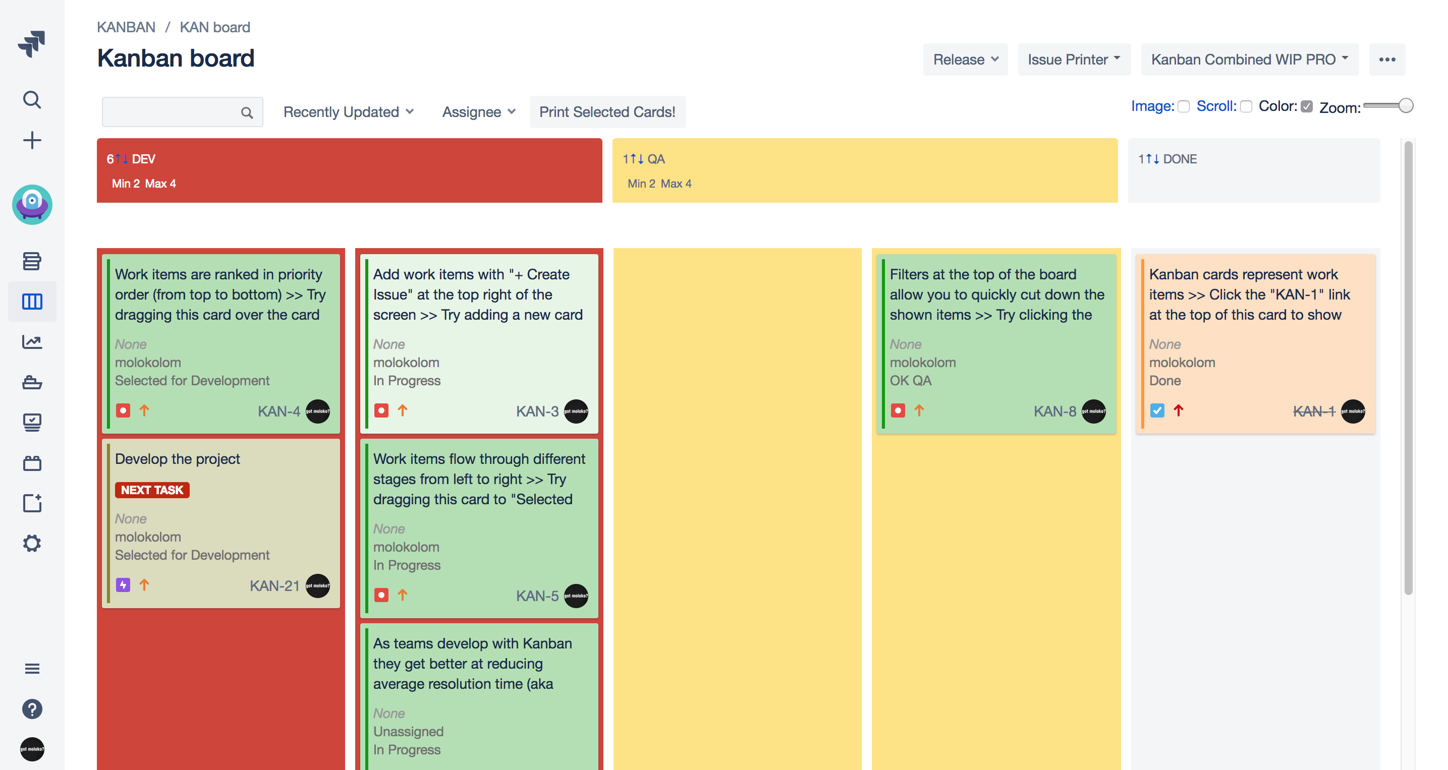 Now in your usual Agile Rapid Board you can make ZOOM using the scroll button ( placed near the COLOR checkbox).