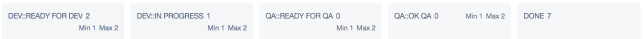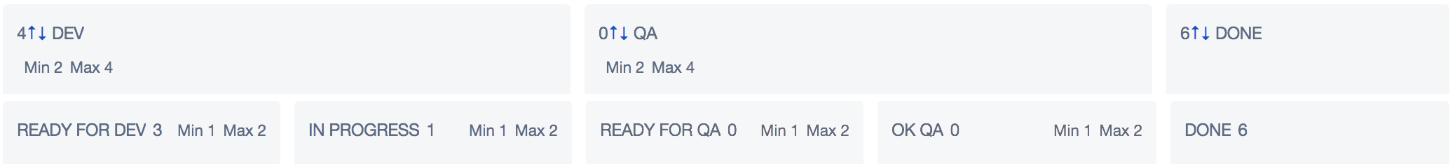 If your columns are combined, the WIP limits will be also combined. This functionality only works in KANBAN and SCRUMBAN boards. If the min or max WIP combined limit is reached, the combined columns will be colorized in yellow ( if the min limit is not reached) and red ( if the max limit is reached).