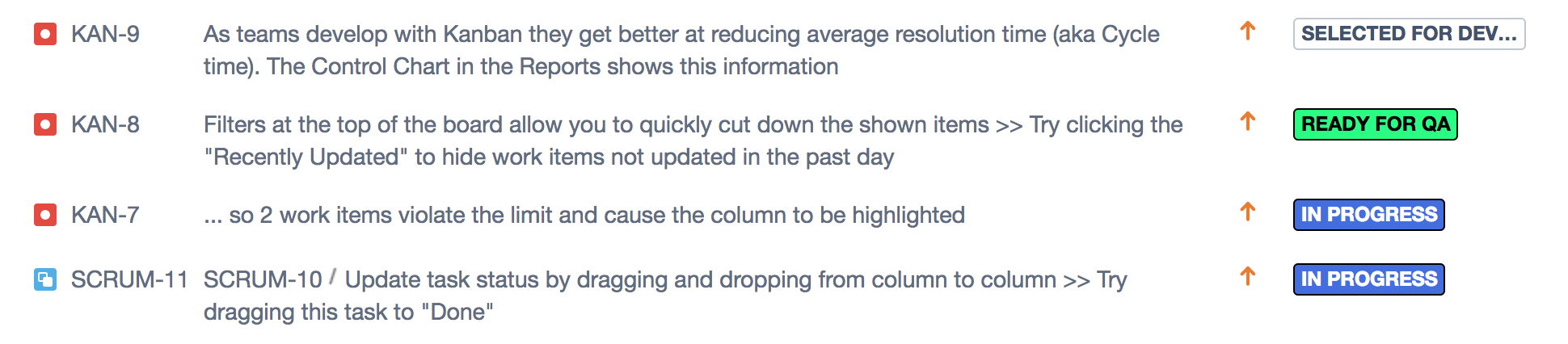 1. Configure it! Click in the “cog icon” and select “Issues”, then in the section “Issue Attributes” click on “Statuses”