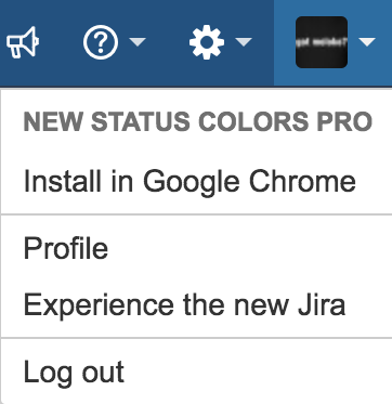 First install the JIRA Cloud plugin. Once installed, in your JIRA, click on the “profile” icon and you will see a “New Status Colors PRO” option. Just click on it to install in Google Chrome (only Chrome Browsers are allowed for now).